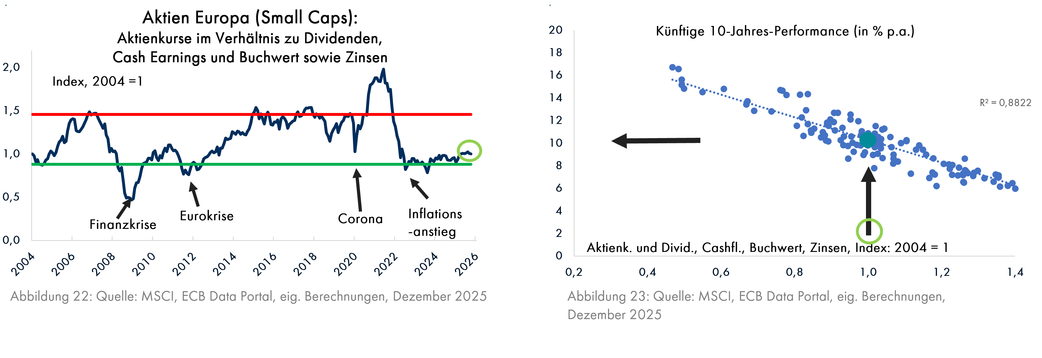 Außerdem sind die europäischen Small Caps niedrig bewertet (Grafik 22), so dass die Ertragserwartung für die nächsten 10 Jahre bei 10% p.a. liegt (Grafik 23).