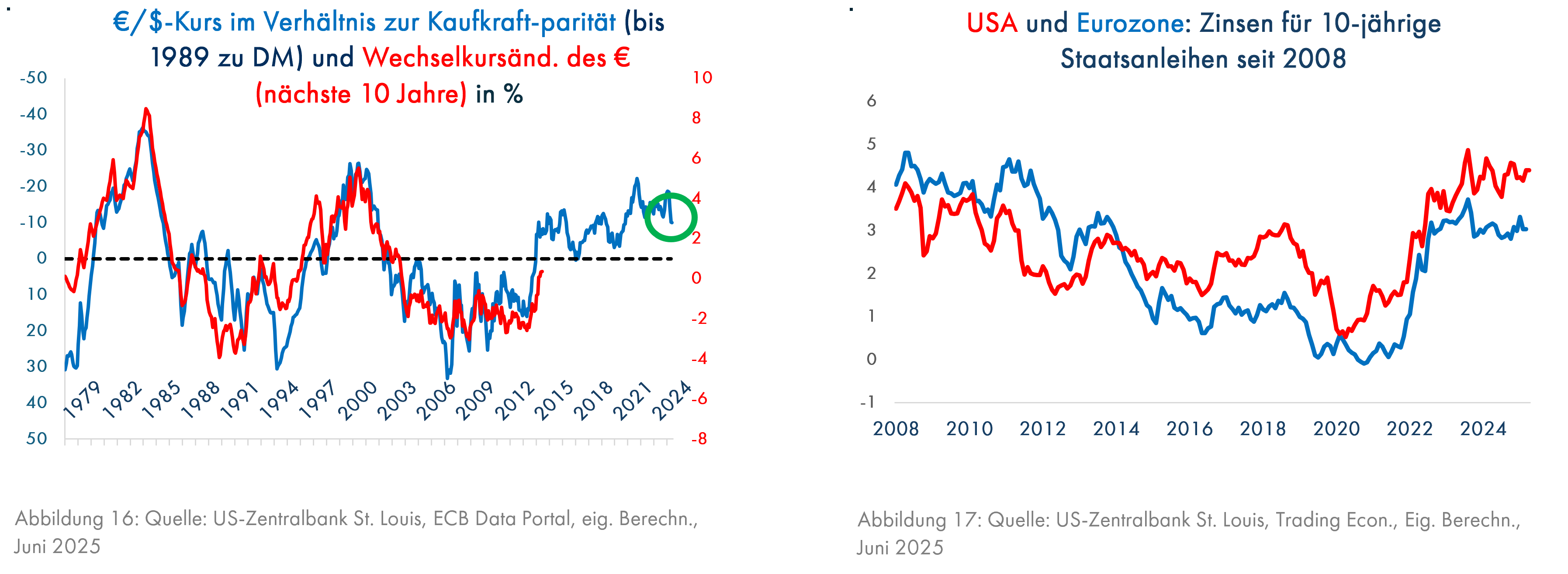 Man kann dem US-Dollar zunächst zugutehalten, dass er 2008 unterbewertet war (Grafik 16) und die Inflationsdifferenzen durch die seit 2014 höheren Zinsen in den USA ungefähr ausgeglichen wurden (Grafik 17).